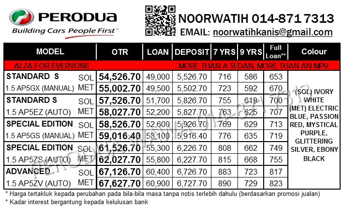 Senarai Harga Perodua 2017 Bezza Axia Myvi Alza Kereta Perodua