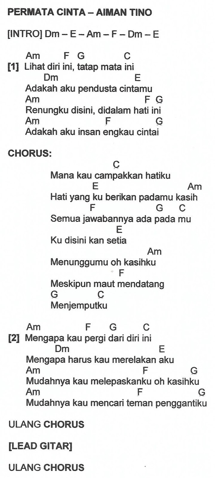 Aiman Tino Permata Cinta Lirik Chord