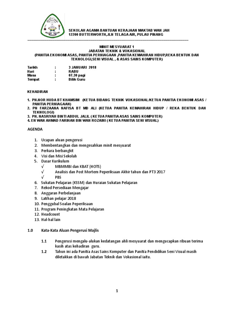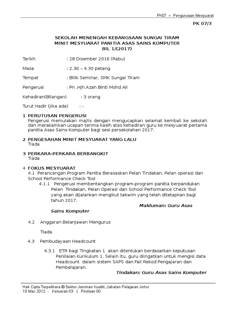 Minit Mesyuarat Panitia Sains 1 2019 Pages 1 5 Text Version Anyflip