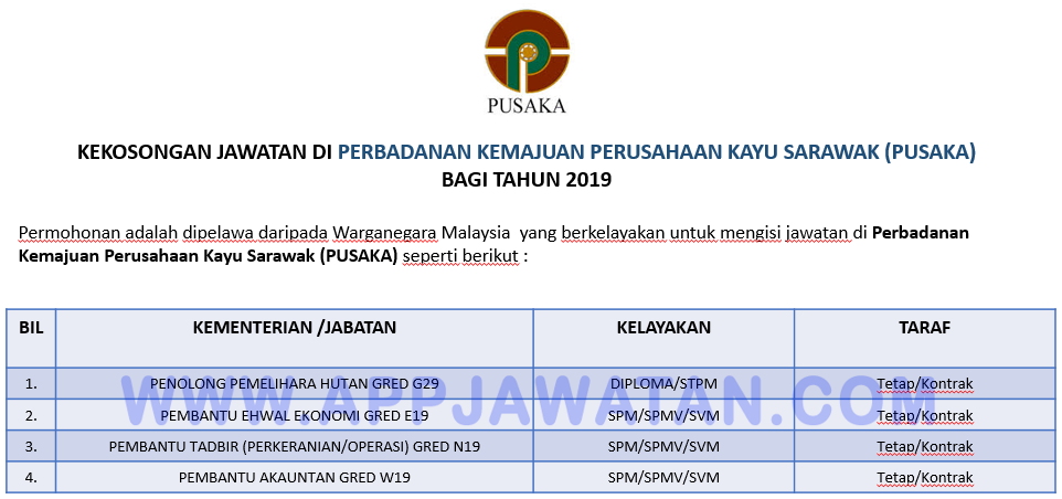 Permohonan Jawatan Kosong Perbadanan Kemajuan Perusahaan Kayu Sarawak Pusaka Portal Kerja Kosong Graduan
