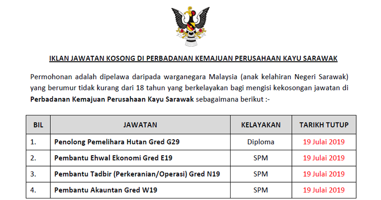 Rasmi Jawatan Kosong Pusaka Perbadanan Kemajuan Perusahaan Kayu Sarawak Terkini 2019 Jawatan Kosong Kerajaan Swasta Terkini 2020