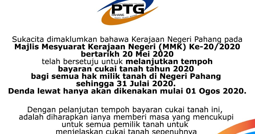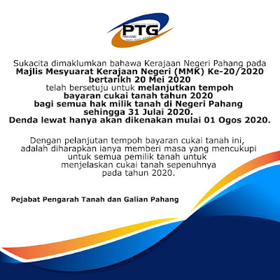 Portal Pahangku Pahang Lanjutkan Tempoh Bayaran Cukai Tanah Hingga 31 Julai